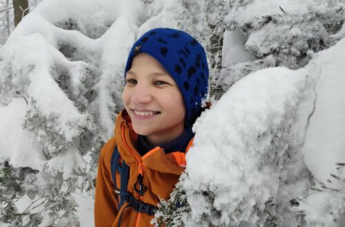 Wstałem o 5 wyruszałem na szlak o 8 godzinie. Szedłem szlakiem żółtym i czarnym pięknie jest w górach. Było dużo lodu i śniegu. Spotkałem psa Ewo. Szukałem śladów na śniegu leśnych zwierząt. Byłem na Rycerzowej. jak schodziłem do auta było dużo kamieni i błota. Trasa miała 14 km. Pogoda dopisała.